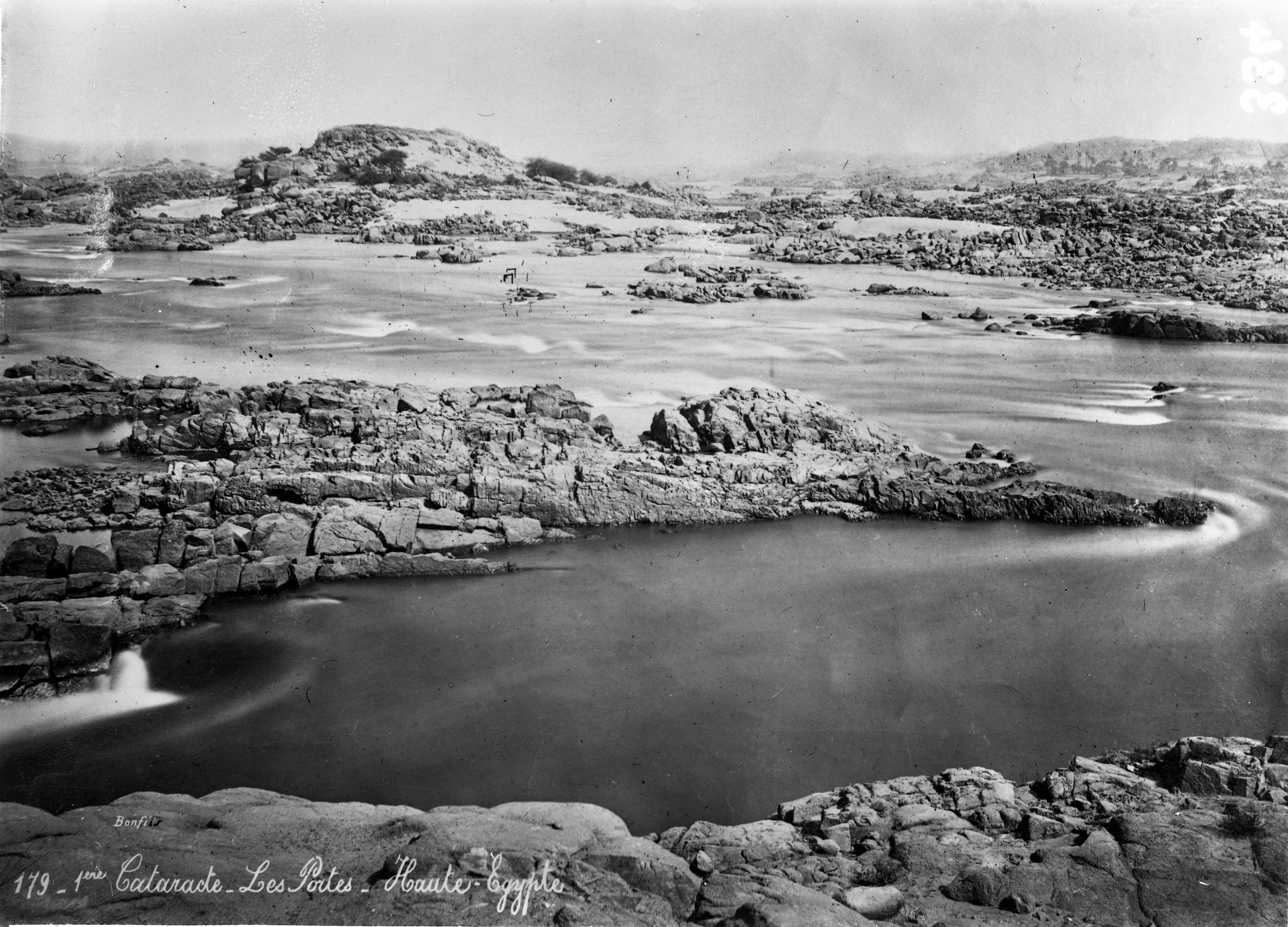 The first Cataract. Reproduction on a photographic plate of a nineteenth-century photograph signed by Felix Bonfils.