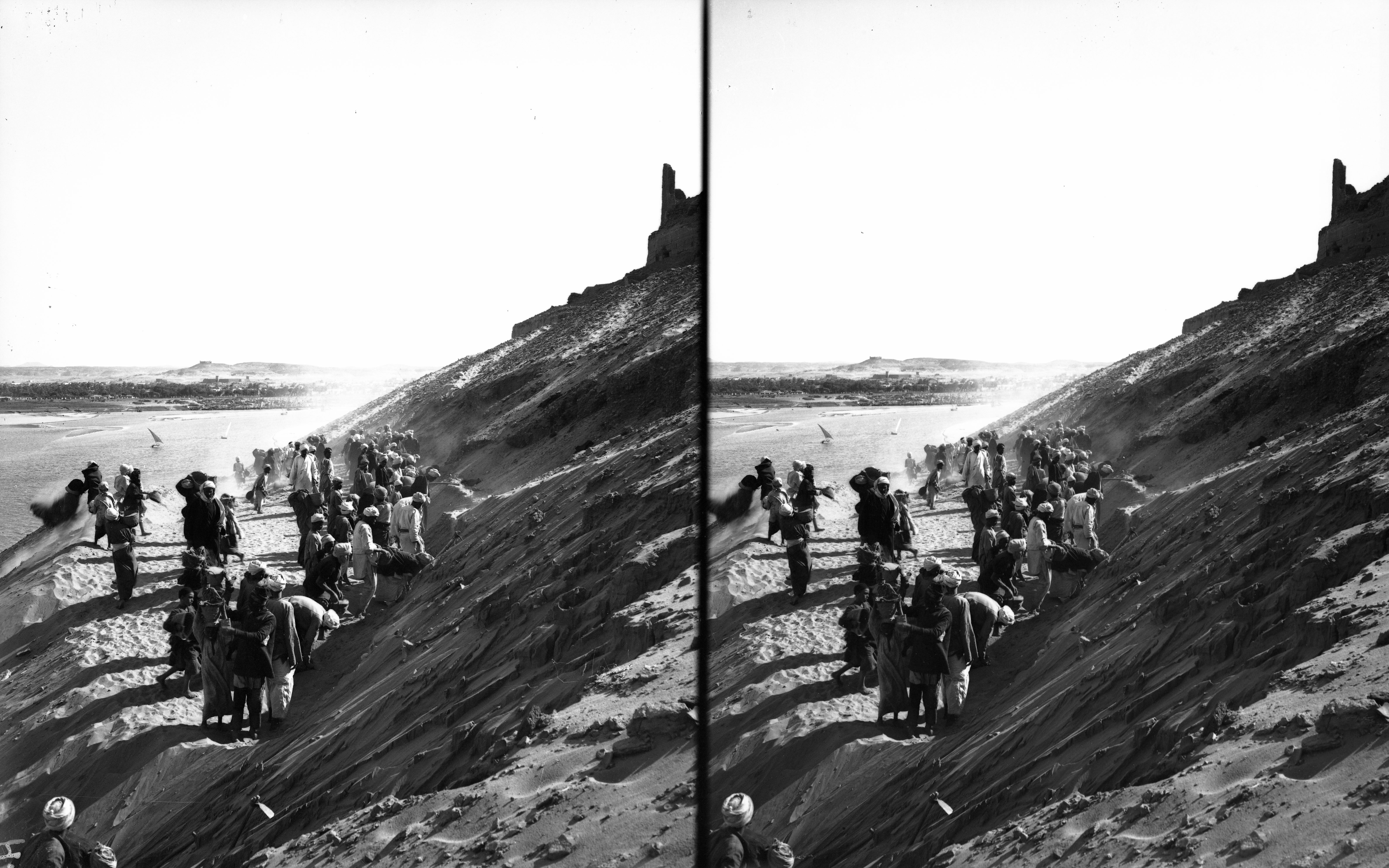 Workers posing for the camera during excavations in Qubbet el-Hawa. Schiaparelli excavations.