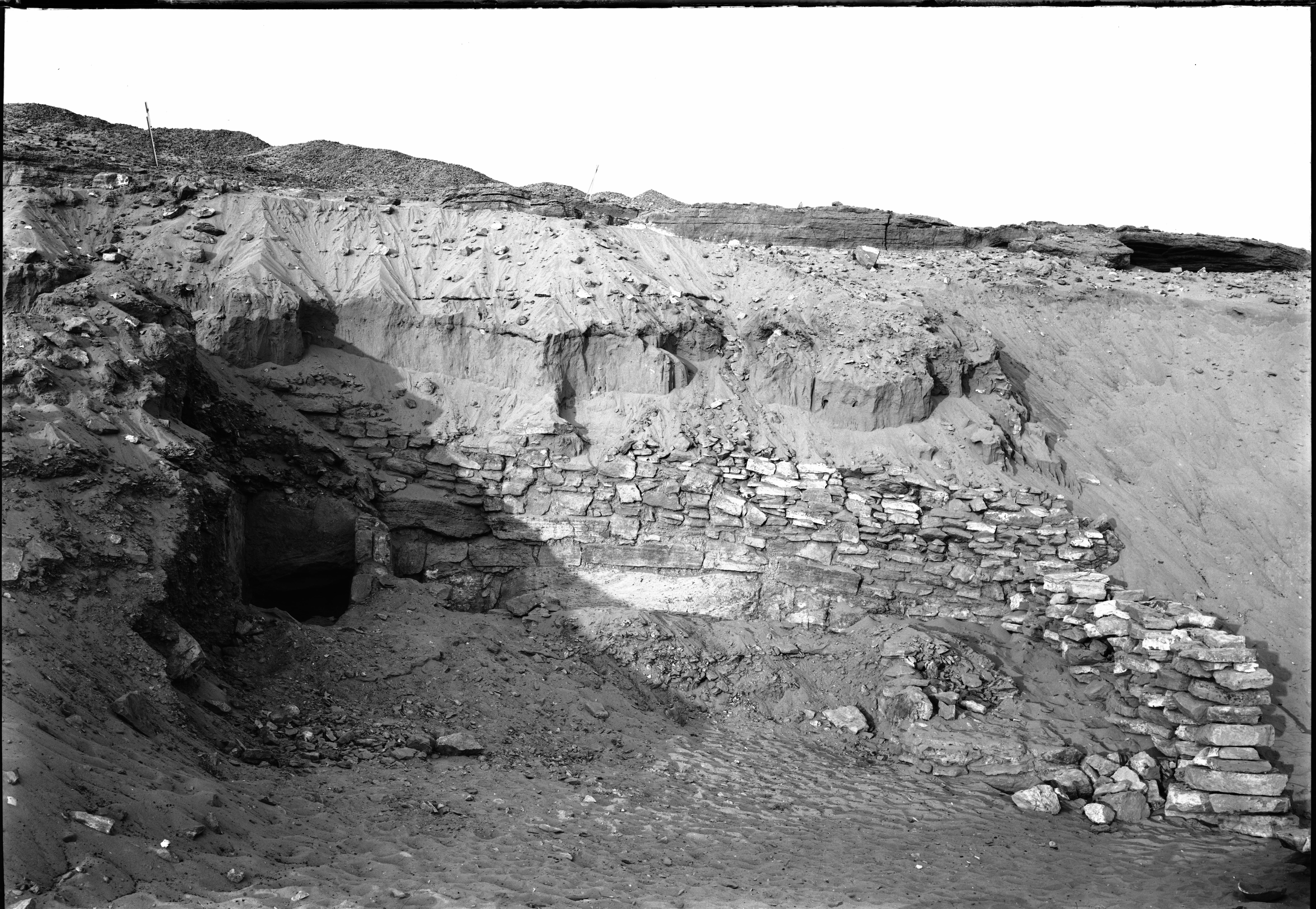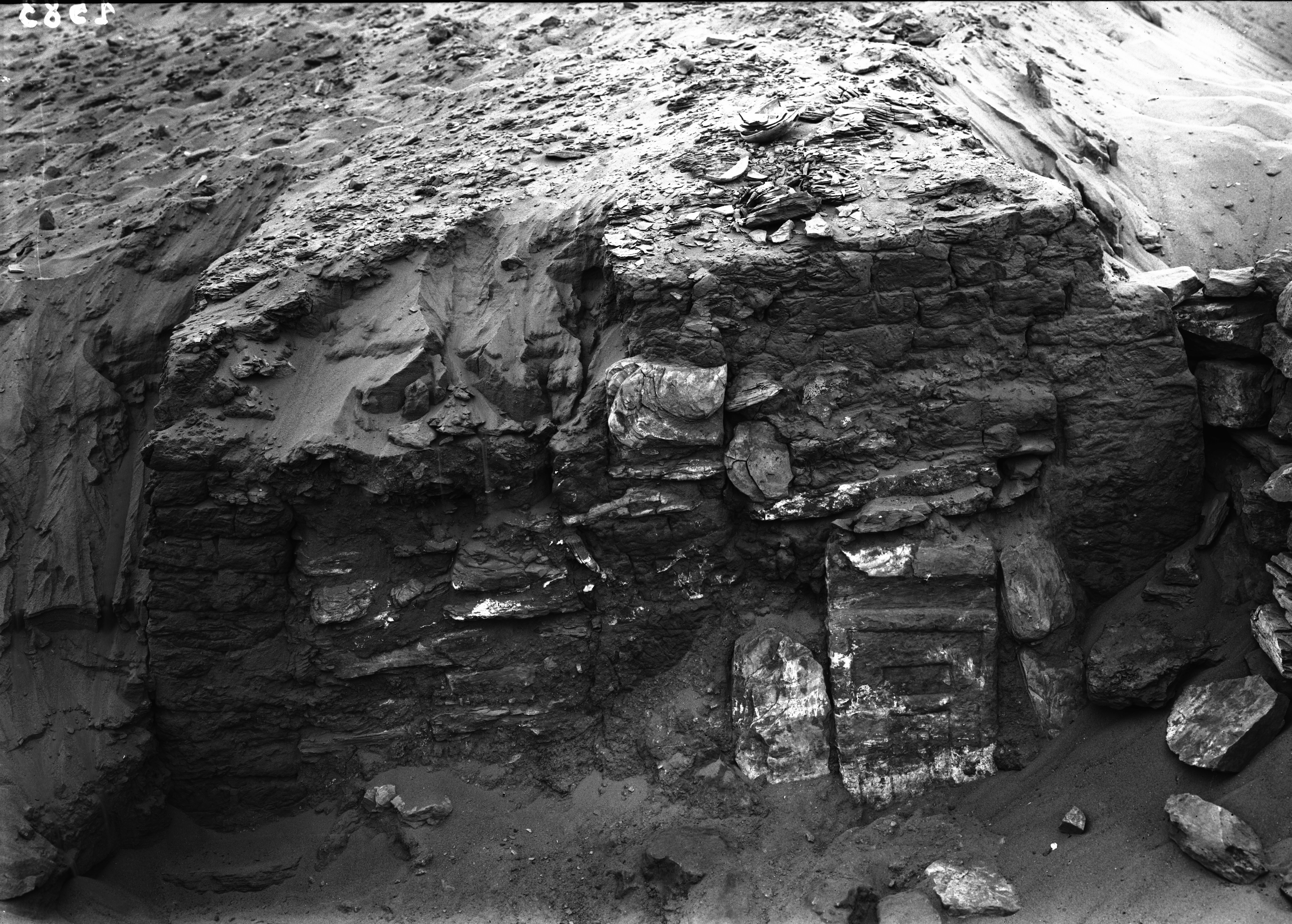 Excavating an architectural structure in Qubbet el-Hawa. Schiaparelli excavations.