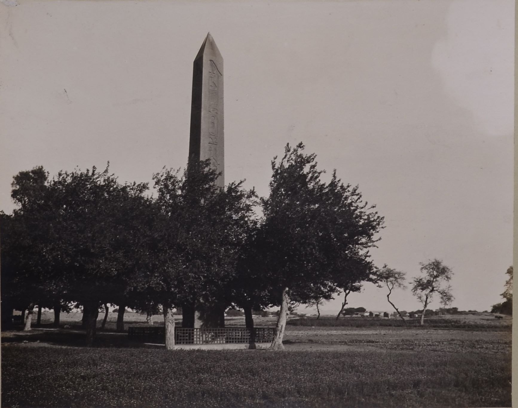 Photograph of the obelisk of Sesostris I, photographed during excavations by the Italian Archaeological Mission. Schiaparelli excavations.