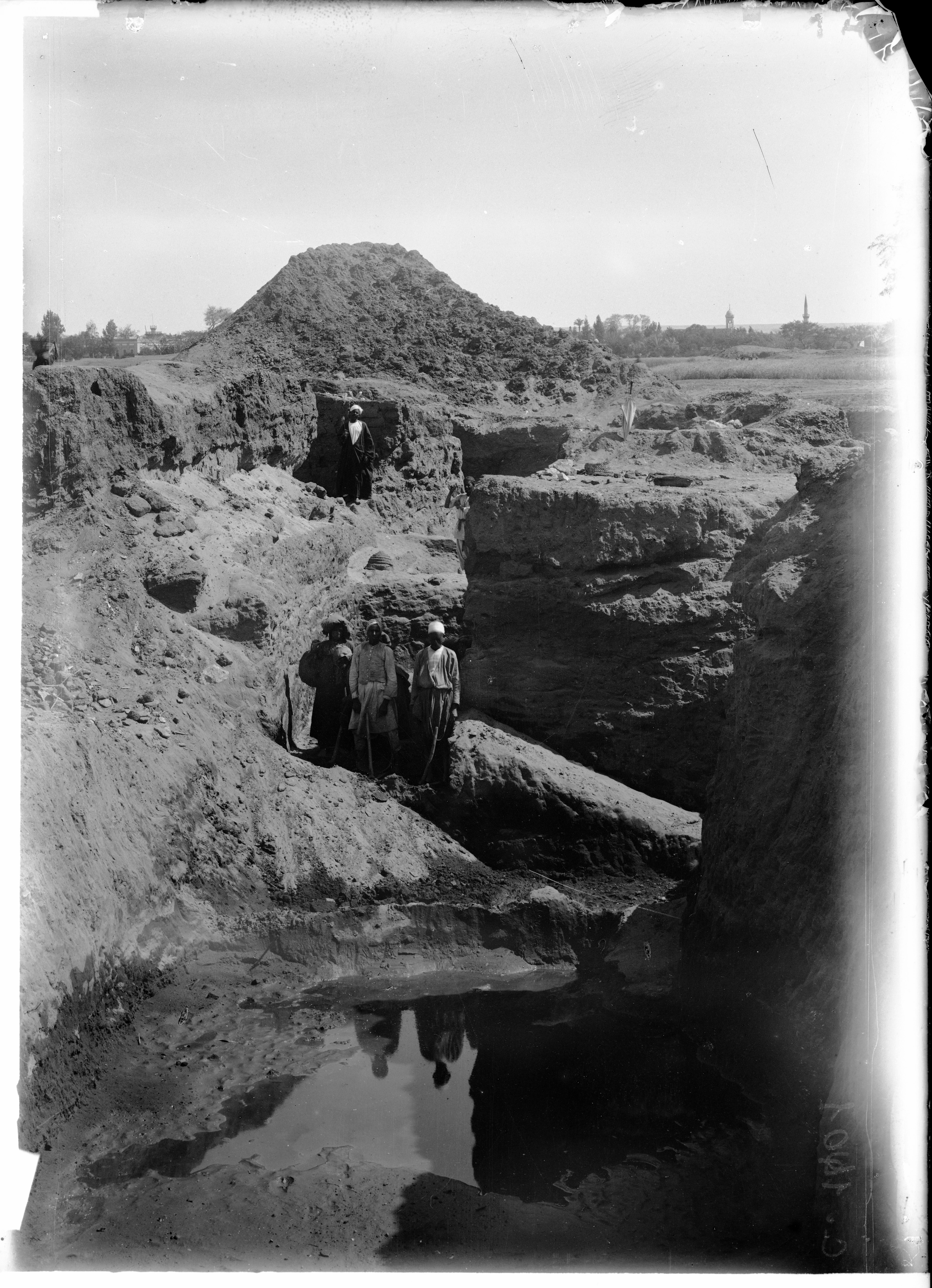Photograph of a trench during excavations at Heliopolis by the Italian Archaeological Mission. Schiaparelli excavations.
