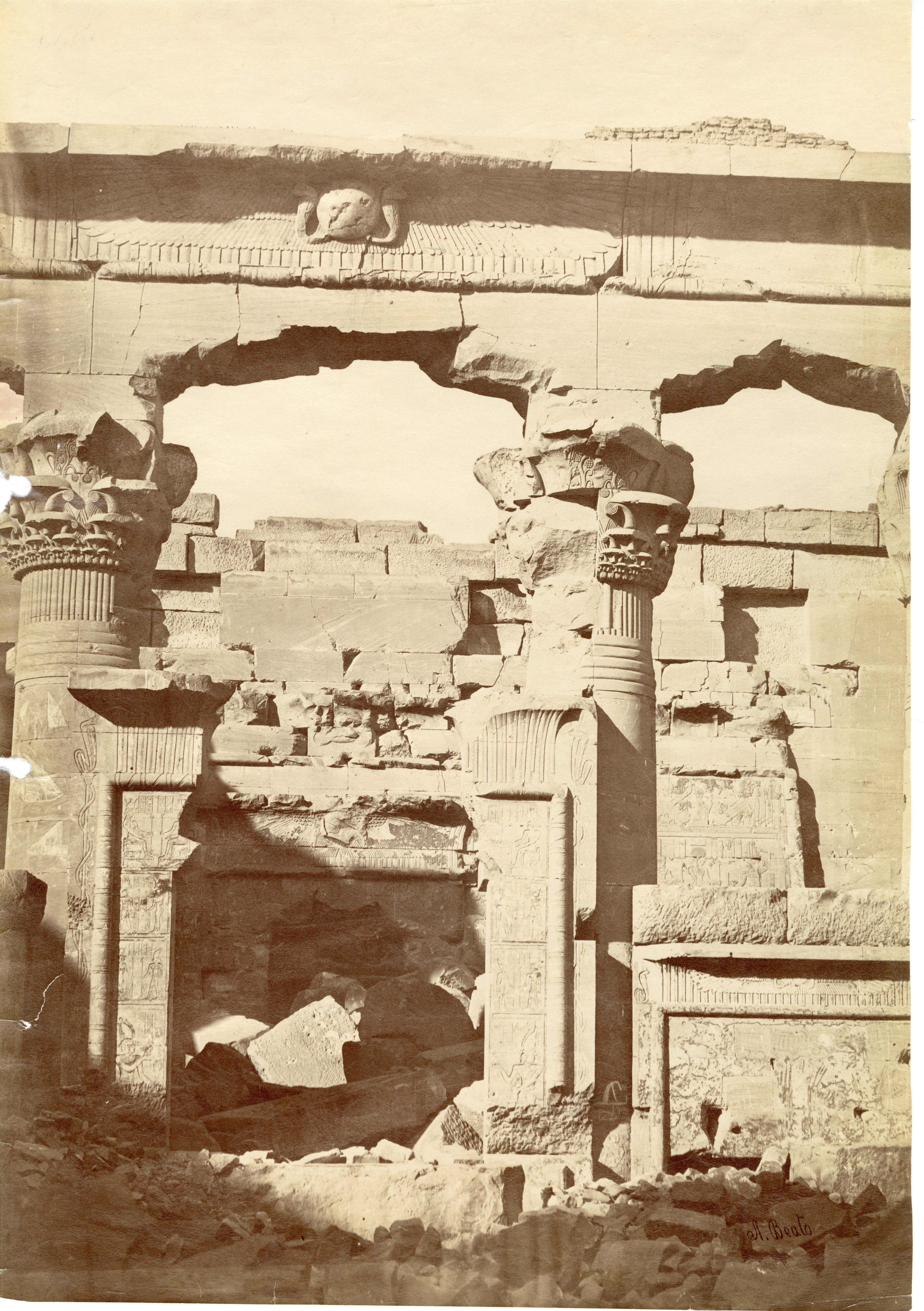 View of the front of the entrance to the innermost part of the Temple of Kalabsha in Nubia, built by Emperor Augustus. The author's signature is at the bottom right.
