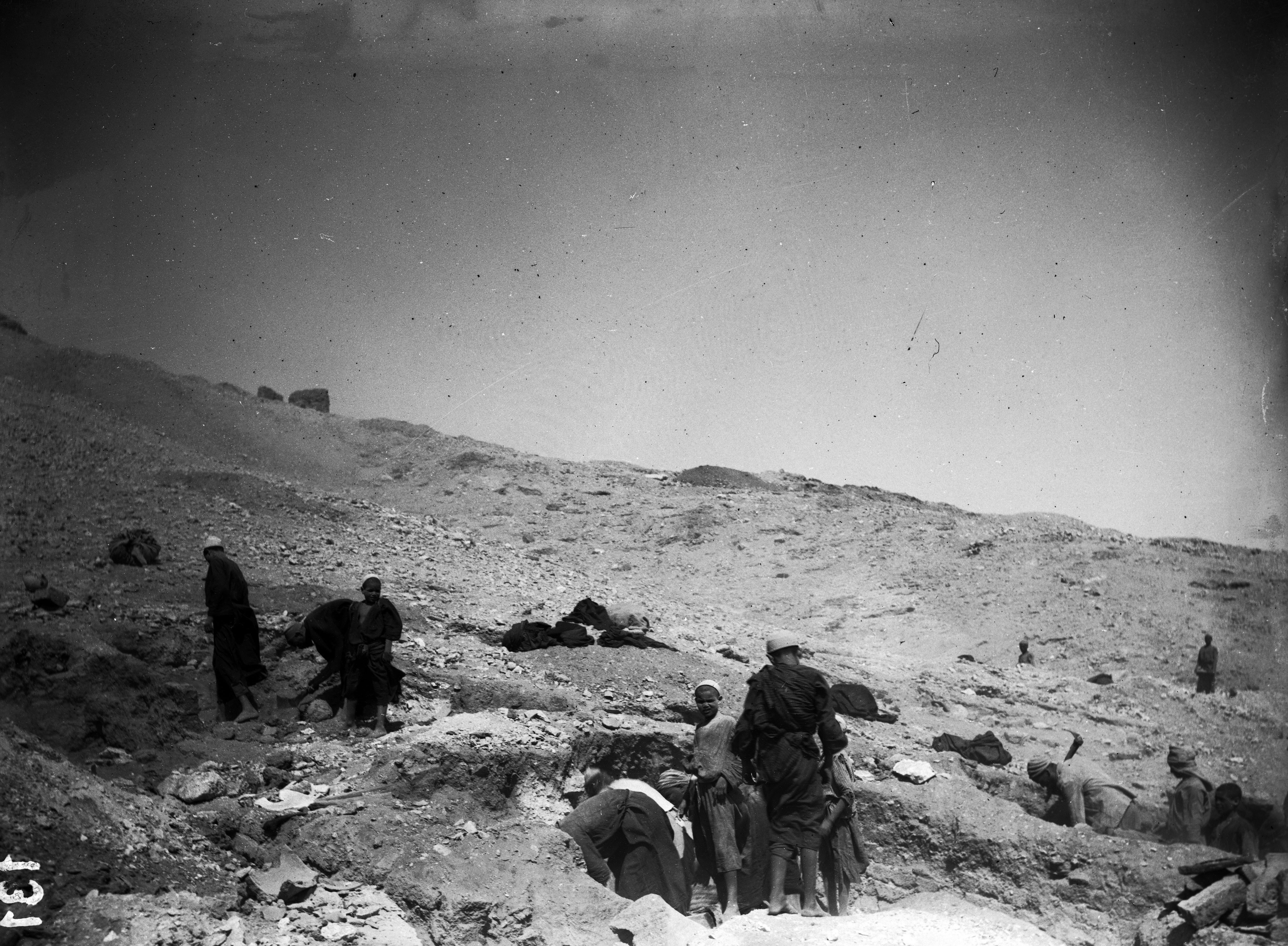 Excavating on the slopes of the mountain. Schiaparelli excavations.