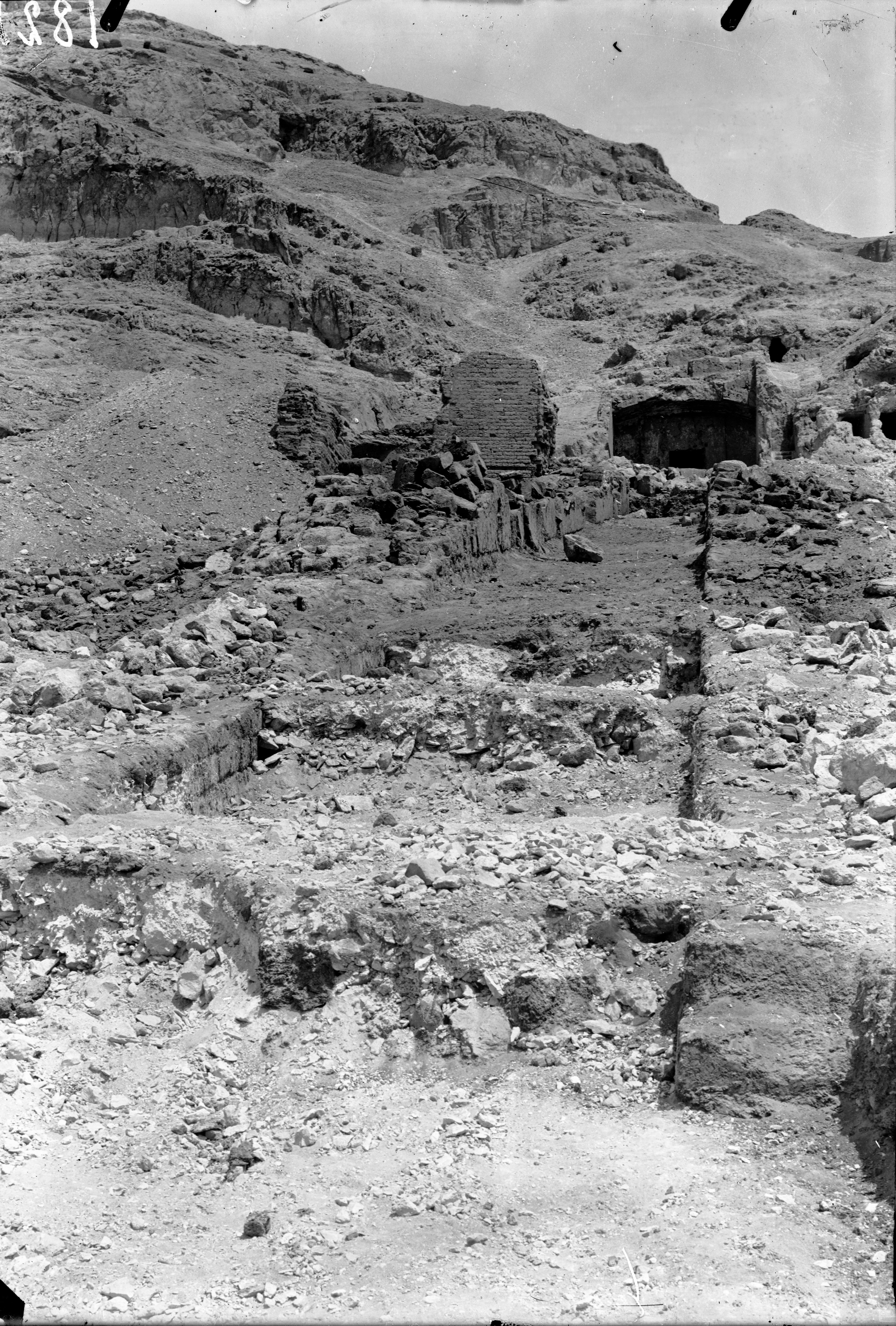 Tomb of Wahka II, lower courtyard. Photograph probably taken towards the end of the excavation works. Schiaparelli excavations.