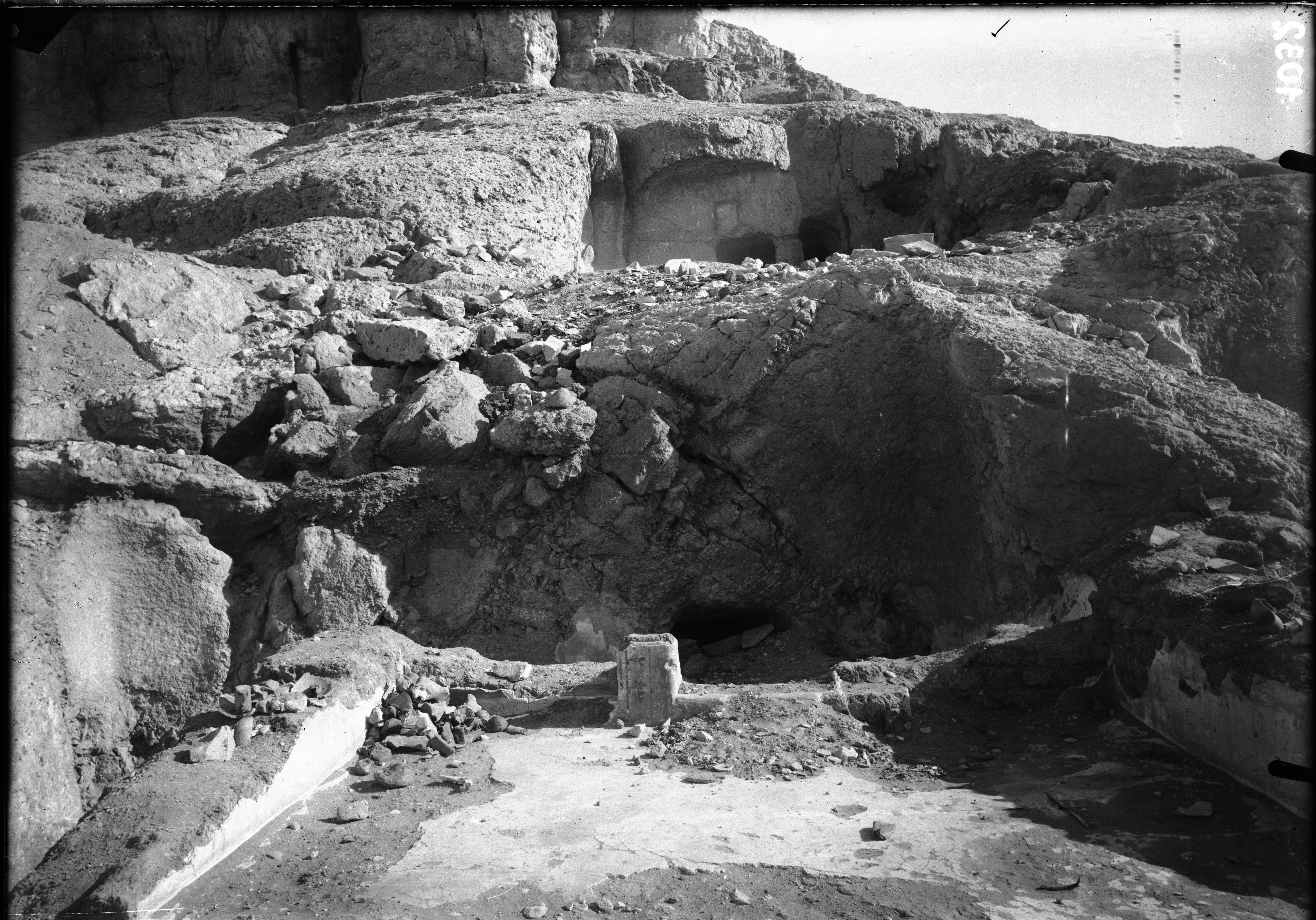 Tomb of Ibu photographed during excavations, view from the lower courtyard. Schiaparelli excavations.