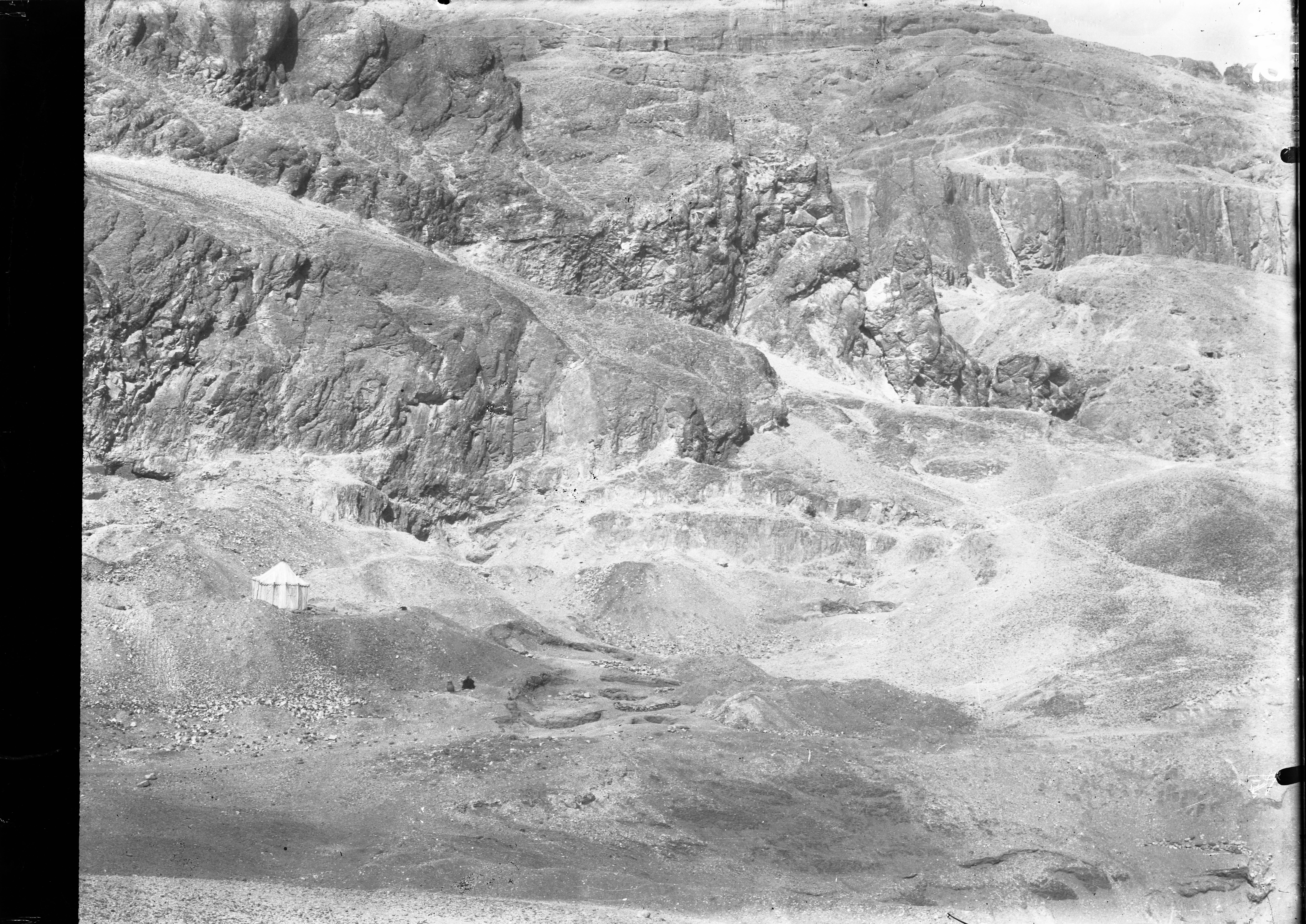 Excavations along the mountain, behind the temple of the goddess Hathor. Schiaparelli excavations.
