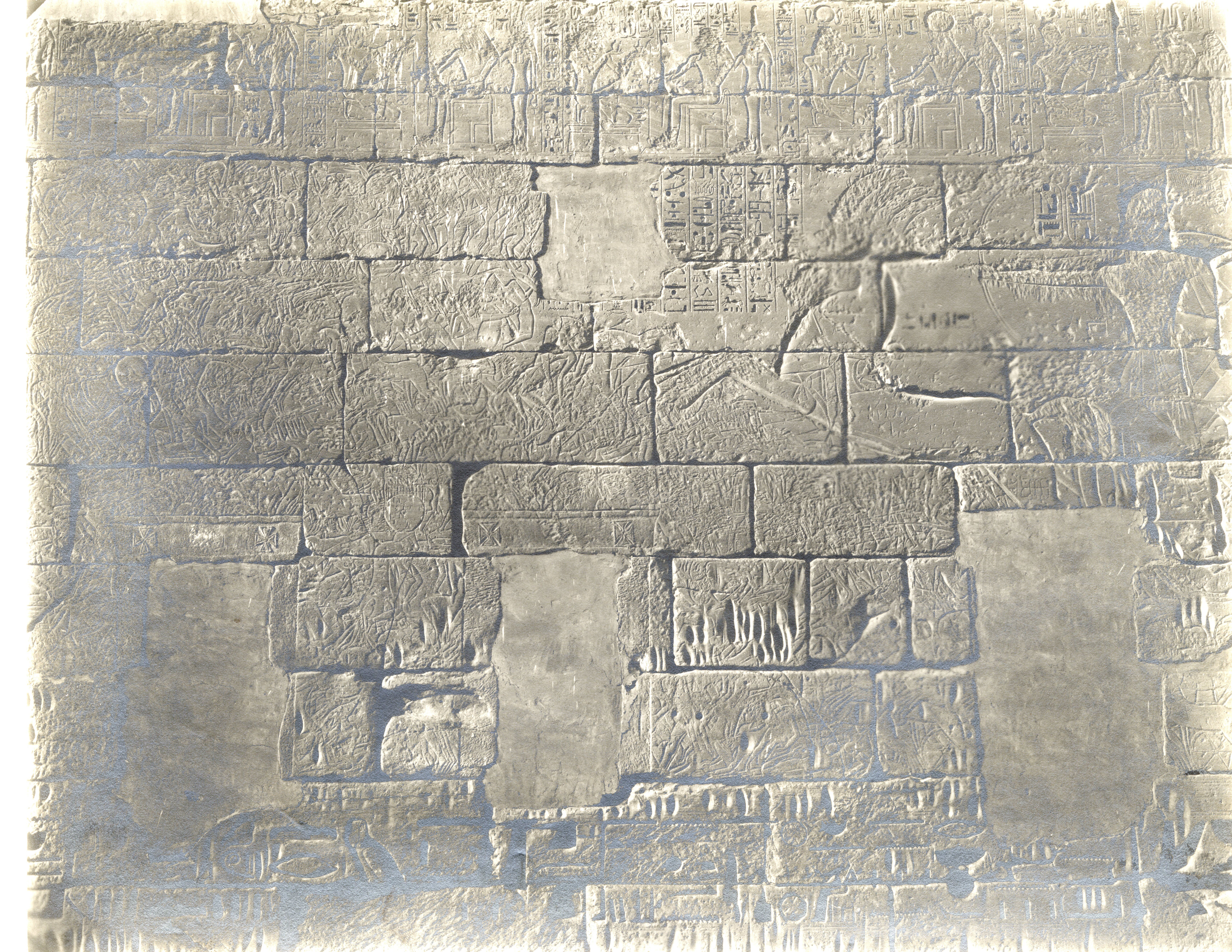 Decorazioni e scritte sulle pareti delle sale interne del tempio di Medinet Habu costruito dal faraone Ramesse III a Tebe, sul lato ovest del fiume Nilo.