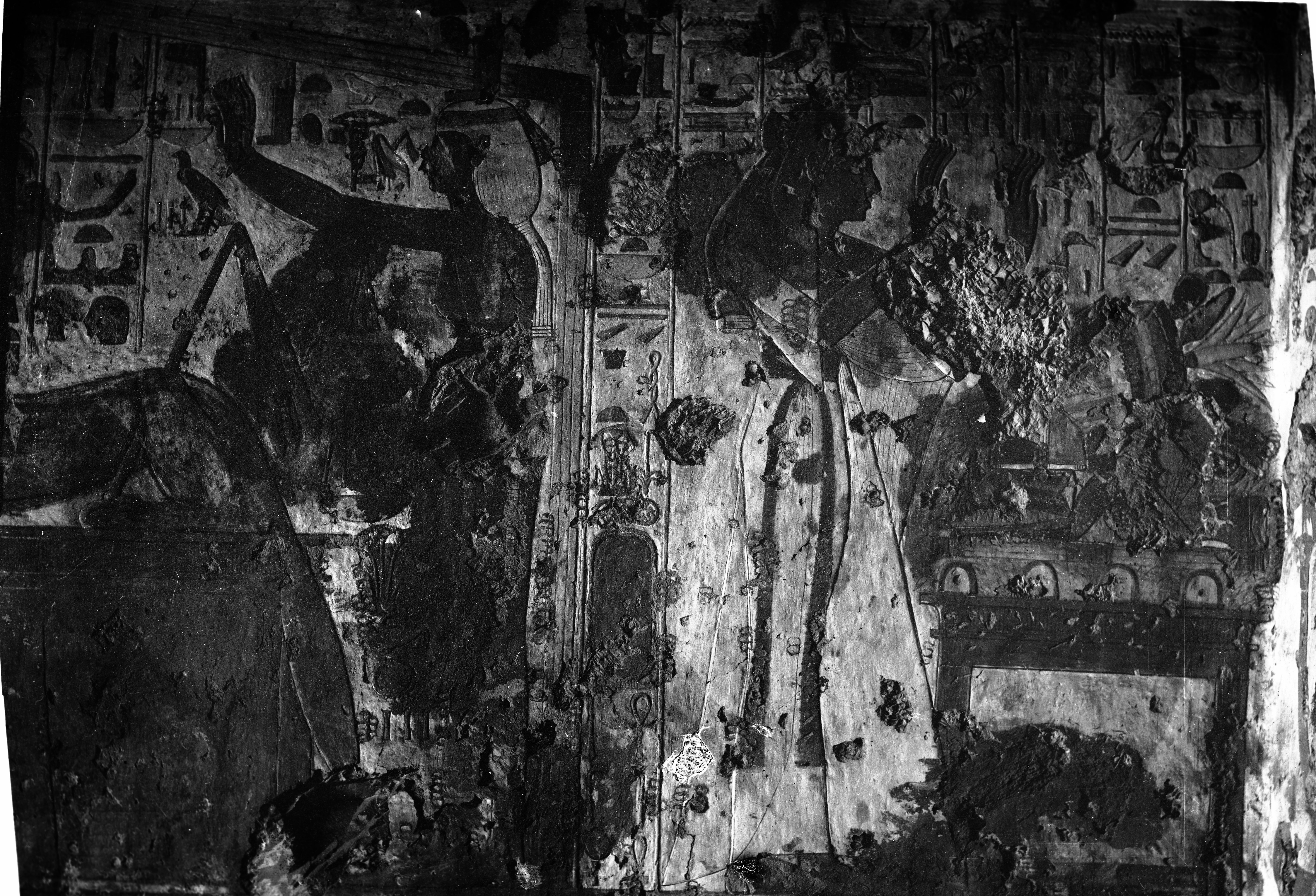 Parete mal conservata della tomba QV40, di una regina anonima. Scavi Schiaparelli.
