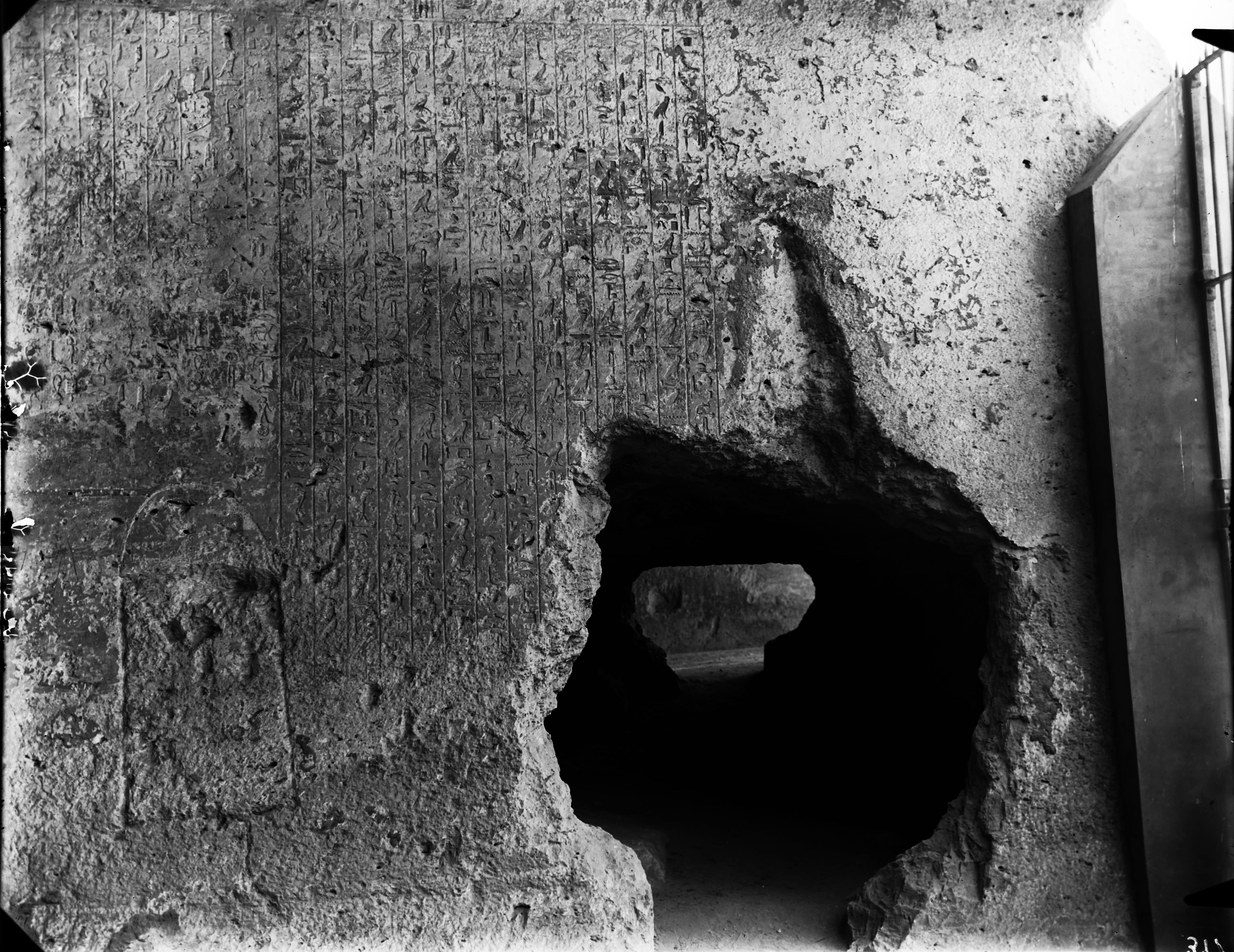 Tomba di Iti-ibi (Tomba III), muro nord, iscrizione autobiografica del nomarca Iti-ibi. Scavi Schiaparelli.